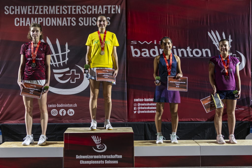En finale, C’est Milena Schnider (BC Adliswil) qui se dressait entre Dounia et l’or. Un classico (16ème face-à-face en simple!) dont la physionomie dépend grandement de la forme du jour des deux protagonistes. En ce premier février 2026, la balance a penché nettement du côté de la joueuse de BLA. Très vive dans ses déplacements, agressive dans ses intentions de jeu, Dounia a continué sur sa lancée et a littéralement asphyxié une Milena qui n’a pas été autorisée à entrer dans le match. Score sans appel, 21-11 21-9, et avec lui le titre de championne de suisse en simple dame si longtemps convoité.