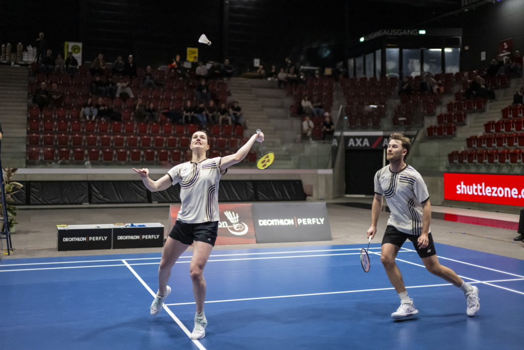 Dernière mais pas des moindre, Caroline Racloz avait été privée de mixte en 2024 (blessée) et 2025 (partenaire blessé). C’est donc sans combattre qu’elle avait du abandonner le titre du mixte emporté en 2023 au coté de Minh Quang Pham. En duo avec Yann Orteu (Badminton Mutschellen), elle était bien décidée cette année à remonter sur la première marche du podium. Tête de série N°2, la paire n’a pas eu besoin de forcer son talent pour atteindre la finale. Ironie du sort, leur adversaires y étaient les frère et sœur Franconville, pour un remake de la finale du RSL Iceland International qui avait eu lieu une semaine plus tôt! Si à Reykjavik Caroline et Yann s’étaient imposés sur un score sans appel, les choses ont été plus compliquées à Winterthur. Peut-être aidés par un parcours un petit peu plus relevé, les yverdonnois sont rapidement entrés dans le vif du sujet. Parti de derrière, Yann et Caroline ont bien failli refaire leur retard, mais ont tout de même dû concéder la première manche. Ensuite, leur rythme de croisière trouvé, ils ont dominé le match pour aller décrocher le titre.
