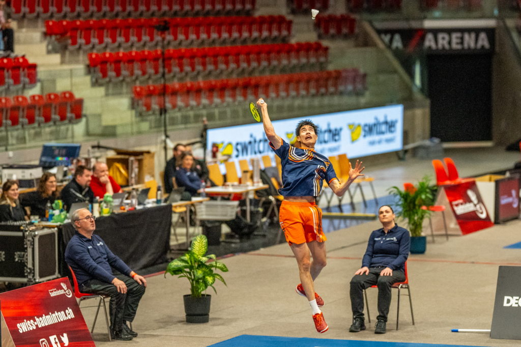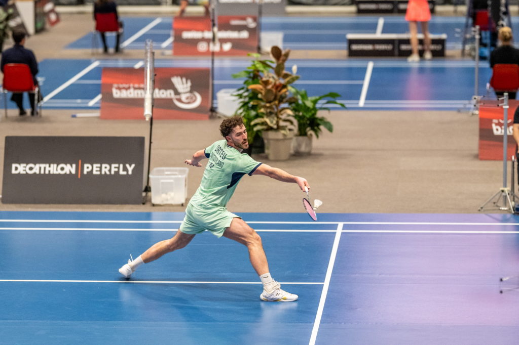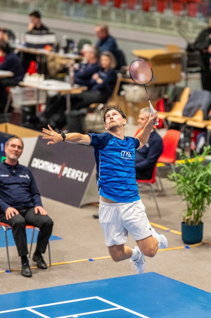 De son côté, David Orteu a fait preuve de beaucoup d’autorité pour écarter le qualifié Loris Pierrehumbert (Neuchâtel BC), frère de Maxime, avant de défier la tête de série N°1, Nicolas A. Müller (BC Zürich). Mené 12-18 dans la première manche, David est parvenu à augmenter l’intensité pour coiffer le favori au poteau, mais n’a malheureusement pas pu répéter cet exploit dans les deux sets suivants malgré une belle résistance. Il s’est donc incliné sur le score de 22-20 13-21 16-21.