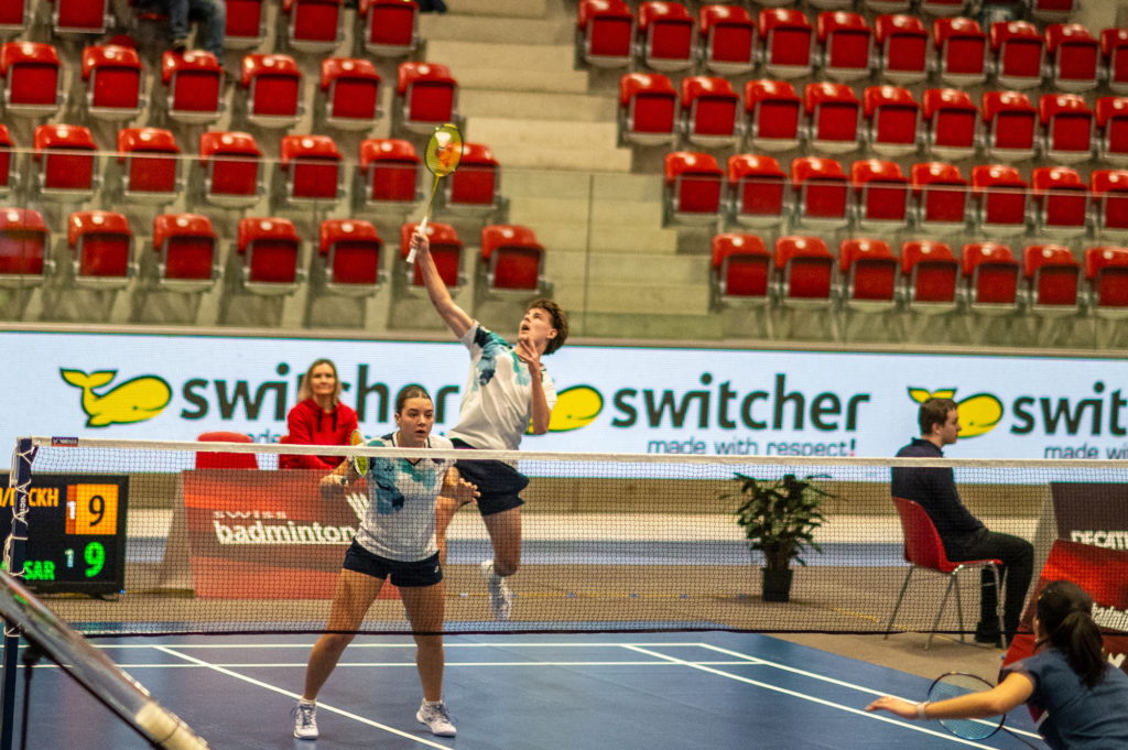 Parmi les 16 paires de mixte qualifiées pour cette phase finale, on trouvais 6 membres de BLA! La seule équipe 100% lausannoise était formée d’Indira Dickhäuser et Baptiste Bordier, qui avaient obtenus leur ticket de haute lutte dans les qualifications deux semaines auparavant. Ils se sont retrouvés face à Felix Ekstrand, récent vice-champion national junior de la discipline, accompagné pour l’occasion de Lana Cesari (BC La Chaux-de-Fonds). Après des chassés-croisés dans la première manche qui ont finalement profité aux grands juniors, on a cru – et certainement eux aussi – que, menant 19-15 dans le deuxième set, l’affaire allait être pliée en deux petites manches. Que nenni. Quelques imprécisions d’un côté, un peu de réussite de l’autre et soudain Indira et Baptiste ont recollé et, en serrant le jeu, ont même emporté la mise 25-23! L’histoire a failli se répéter dans le set décisif, mais cette fois Felix et sa partenaire ont fait véto. 21-19.